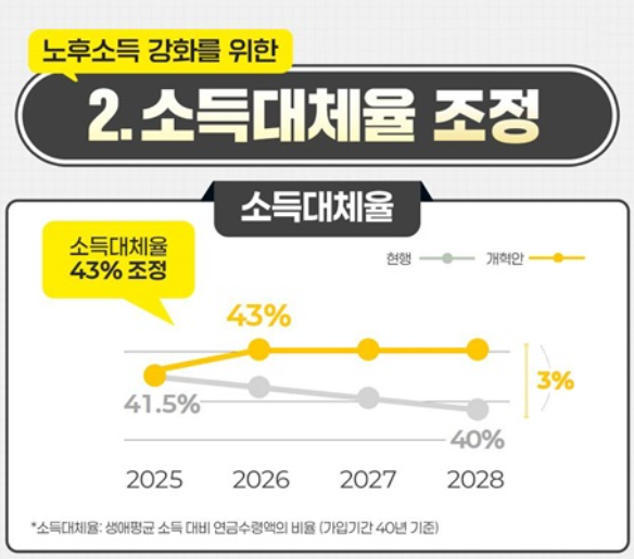 연금 기금의 안정성 문제: 소득대체율을 올리면 연금 지급 부담이 커지므로, 지속적인 재정 계획과 추가 개혁이 필요할 것입니다.