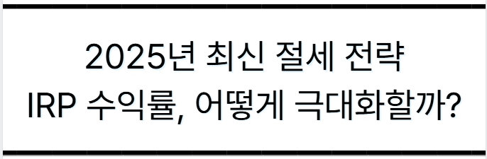 📢 꾸준한 운용 습관과 전략적 선택만 있다면, IRP는 여러분의 노후를 든든히 책임질 최고의 절세 도구가 될 수 있습니다.