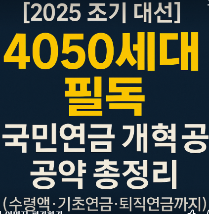 2025년 조기 대선(6월 3일)이 다가오면서 4050세대의 최대 관심사는 단연 안정적인 노후 준비입니다. 중장년층이 평생 납부해온 연금이 과연 미래에도 충분한지, 국민연금 개혁, 퇴직연금·IRP 활용, 기초연금 확대 등 후보들의 공약을 면밀히 비교해야 할 시기입니다.