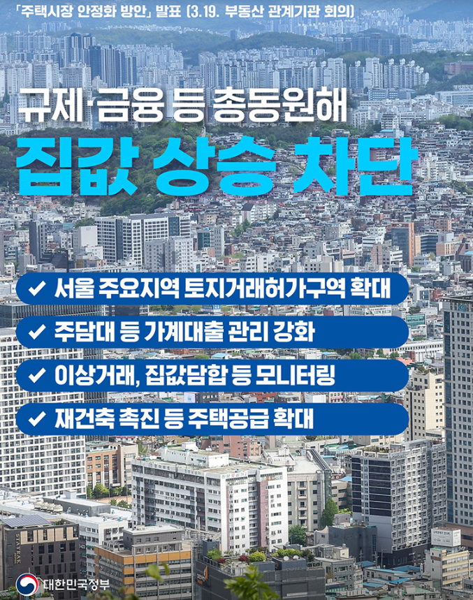 2025년 3월 19일, 정부와 서울시는 부동산 시장의 안정을 위해 파격적인 대책을 발표하였습니다. 이번 대책은 토지허가제의 전면 확대와 금융 규제 강화, 그리고 부동산 투기 수요 억제를 목표로 하고 있습니다.