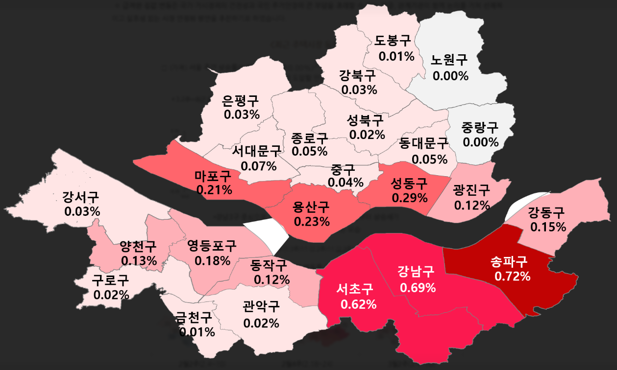 토지거래허가구역 확대 ▶ 기존 일부 지역에만 적용되던 허가 제도를 서울시 내 주요 4개 구(강남구, 서초구, 송파구, 용산구 등) 전역으로 확대하여, 일정 규모 이상의 토지 거래 시 관할 구청의 허가를 필수로 함.