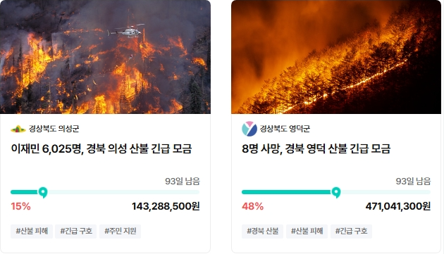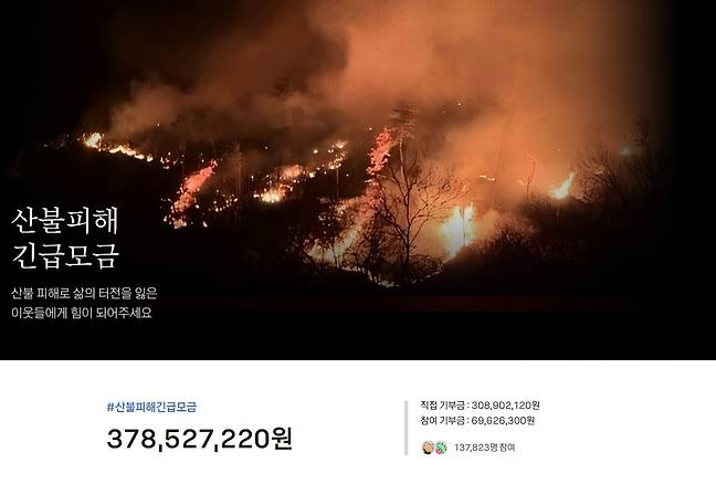 대형 산불이 발생하면 즉각적인 지원이 절실합니다. 현재 대한민국 곳곳에서 산불 피해 긴급 모금이 진행 중이며, 많은 국민들이 산불 피해 성금을 기부하며 힘을 보태고 있습니다.